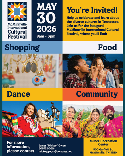 This exciting new event will bring people together for a vibrant celebration of heritage, tradition, and connection right here in McMinnville.Location:Milner Recreational Center | 500 Garfield Street, McMinnvilleDate/Time Information:May 30th from 9:00-5:00 pmContact Information:James ''Mickey'' Gwyn (301) 752-0316Set a Reminder: